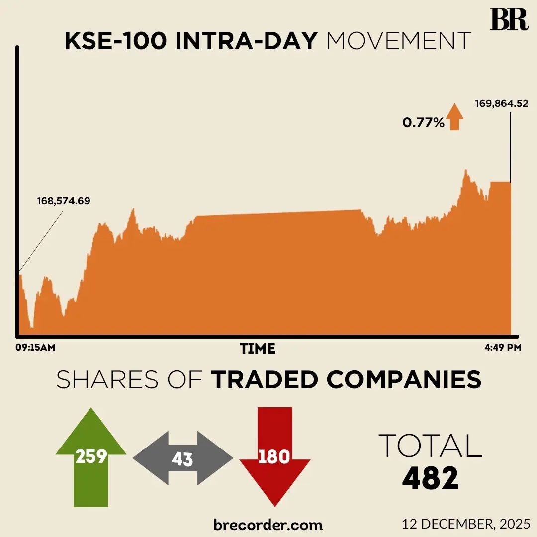 Buying momentum was observed throughout the trading session, pushing the KSE-100 to an intra-day high of 170,052.87.